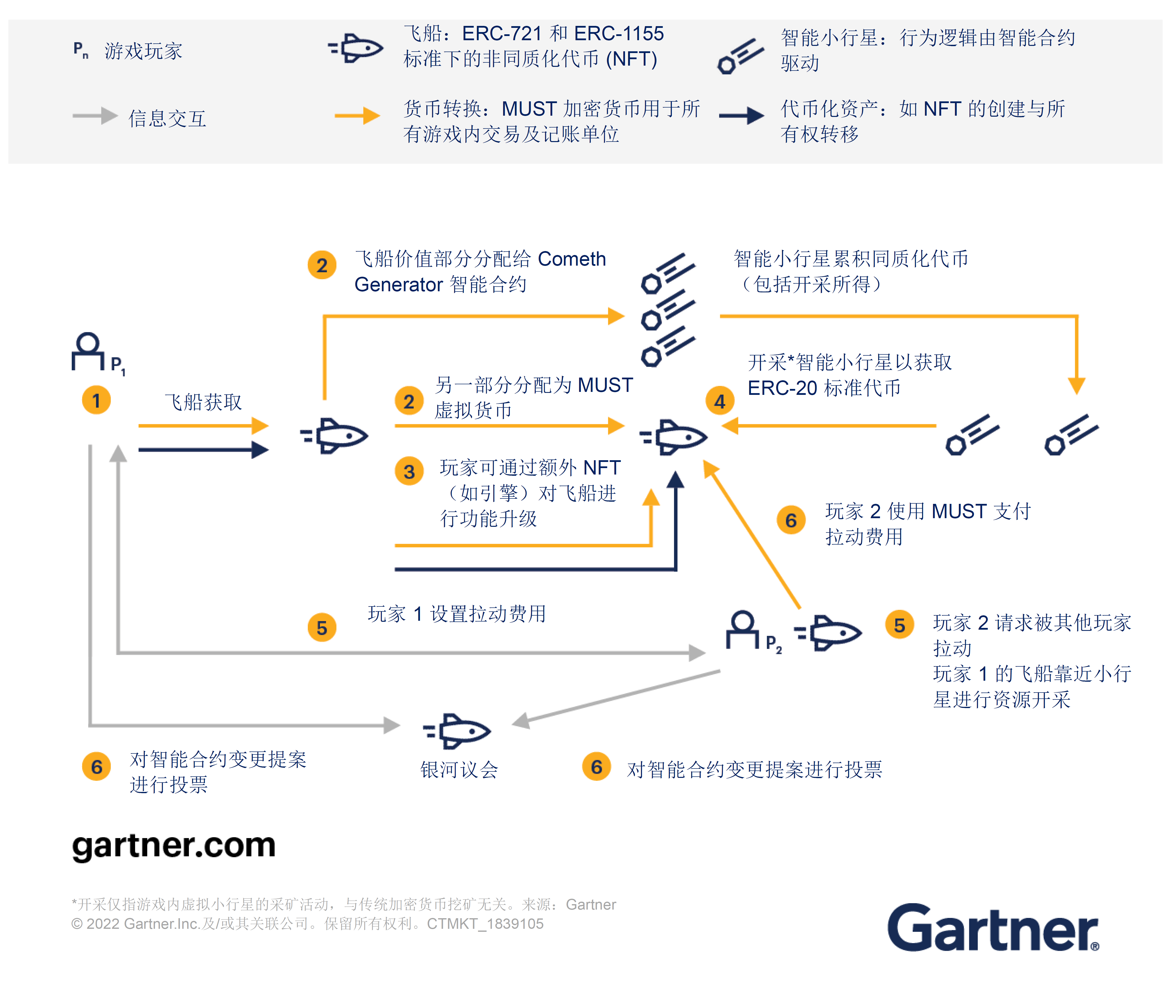 下图以元宇宙商业模型为例,详细解析了上述三大核心领域。以游戏客户为代表,他们对经济产品和价值主张的需求往往超越传统品牌的现有布局,并尚未被有效满足。这一需求驱动了 Web 2.0 参与者借助区块链技术,为 DBA 注入全新活力,加速向 Web 3.0 能力转型。