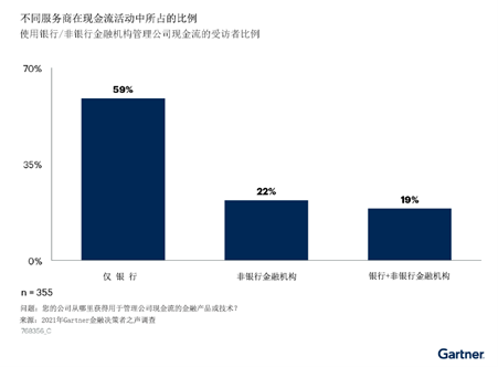 2021年Gartner金融决策者之声调查显示,银行仍然是企业主要的流动性服务商。