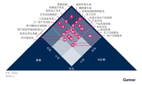 Gartner研究总监龚慧巍表示:“中国制造业的运营产生了大量数据,而且数据已被视为是对AI最有价值的资产,中国有望成为AI算法开发、建模和成功实施用例的沃土。”