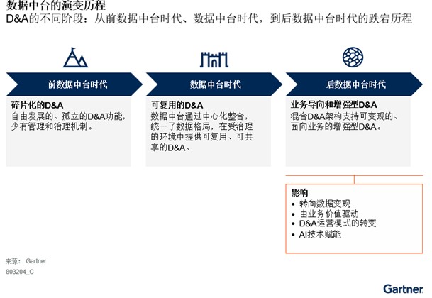费天祺表示:“在充满不确定性和挑战的环境中,D&A部门需要超越仍然仅专注于数据技术方面的数据中台,通过价值故事来展示D&A对业务目标的支持作用,从而阐述其战略价值。数据只有应用在能够创造价值的特定场景中,才能展示出其可衡量的价值。因此,D&A领导者不应只强调D&A目标,而是要让高管和业务部内领导者成为D&A价值故事中的主角,而后者应成为D&A进程中最好的倡导者和支持者。”