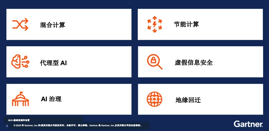 Hewitt表示:“地缘回迁是‘民族主义与全球主义’趋势的延伸。其影响已超越云,从数据主权范畴一直延伸到运营主权与技术主权。地缘回迁使I&O能够在降低地缘政治风险和满足特定主权要求的同时,帮助I&O领导者提高本土经济独立性。”