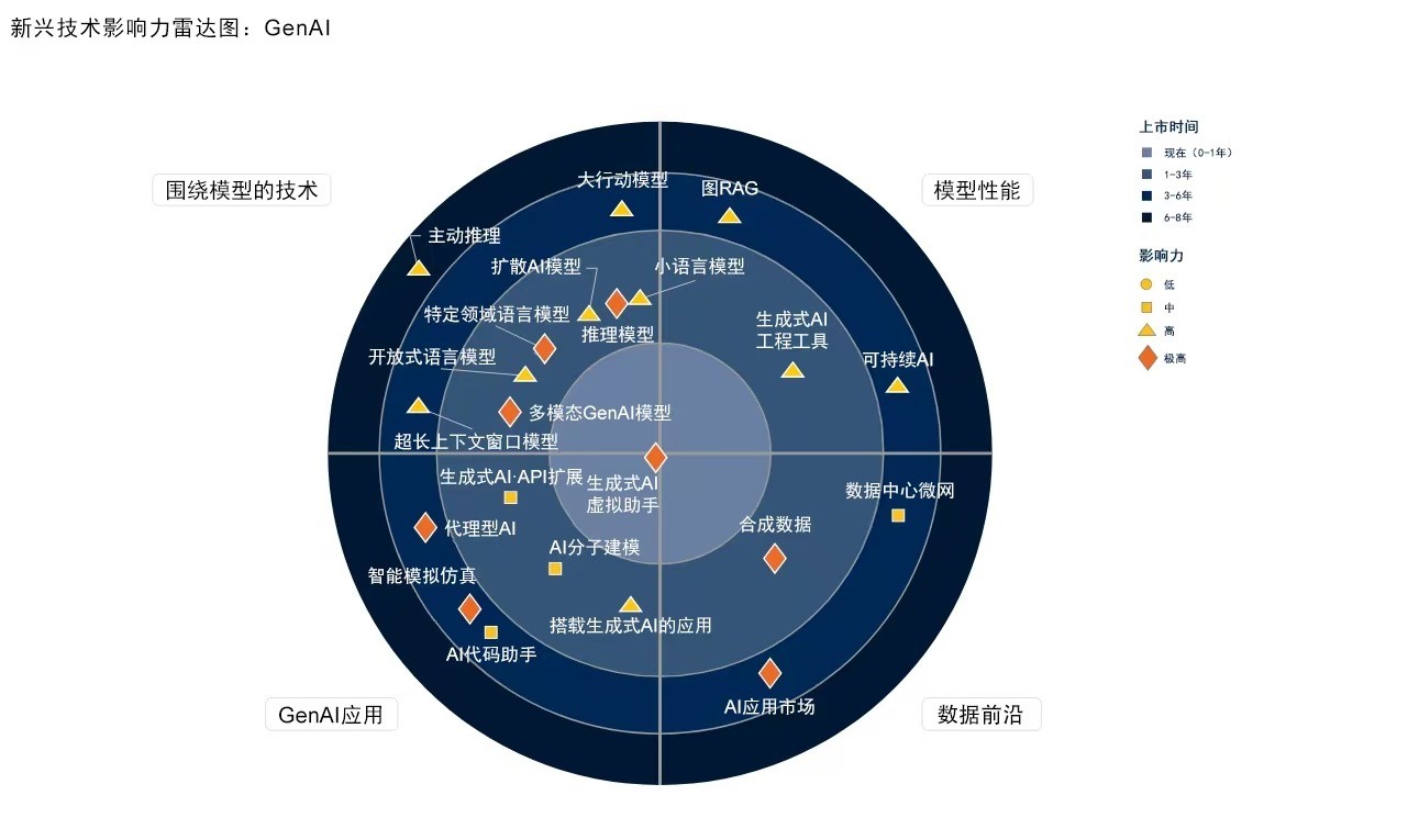 多模态GenAI模型等具有重大影响力的技术位于“Gartner新兴技术影响力雷达图:GenAI”的中心(见图一)。产品负责人必须就投资这些新兴GenAI技术做出关键性决策,从而帮助客户创造前所未有的业务价值。”