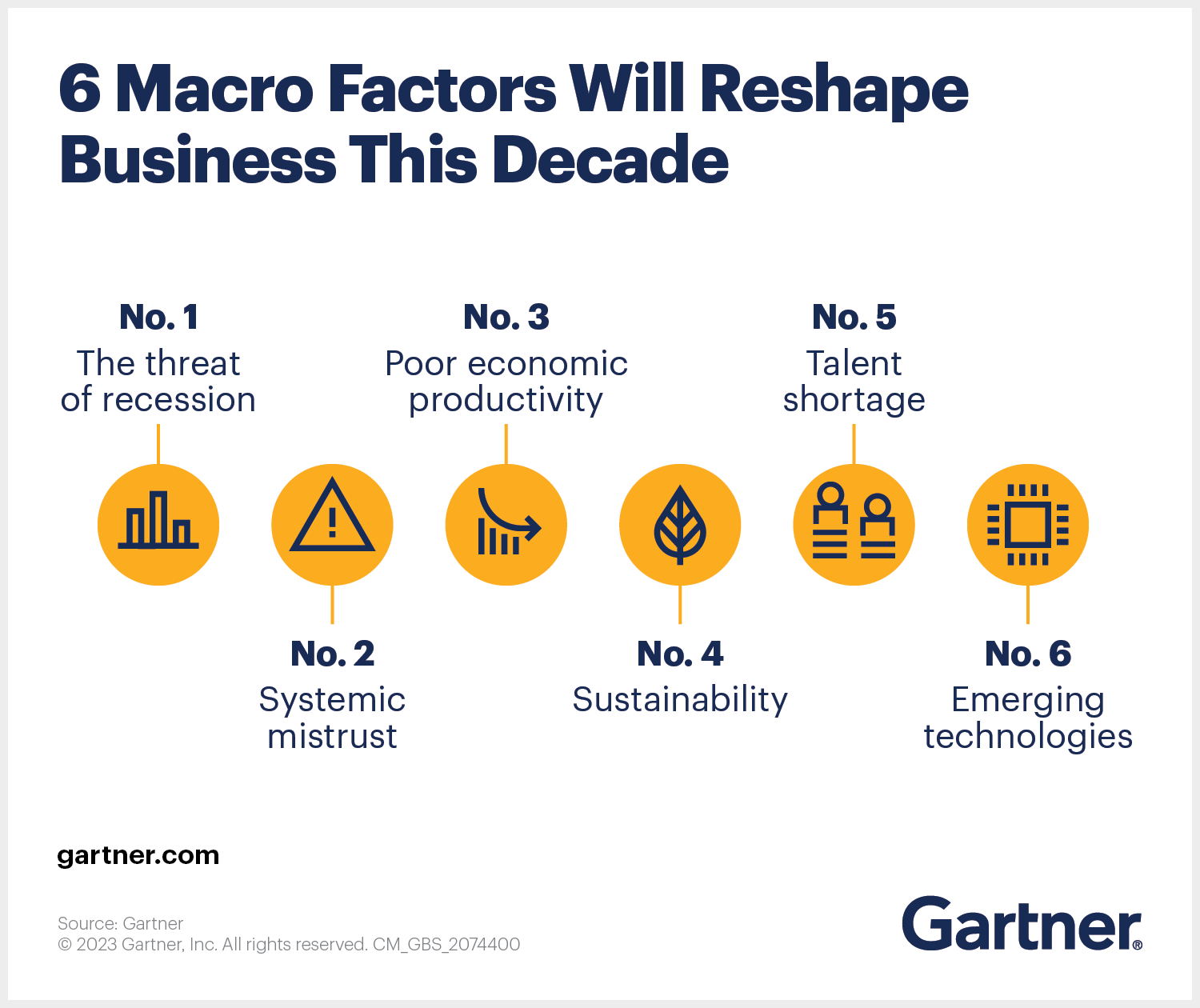 “As we entered the 2020s, economies were already on the edge,” says Mark Raskino, Distinguished VP Analyst at Gartner. “A decade-long boom, generated substantially from inexpensive finance and lower-cost energy, led to structural stresses such as highly leveraged debt, crumbling international alliances and bubble-like asset prices. We were overdue for a reckoning.”