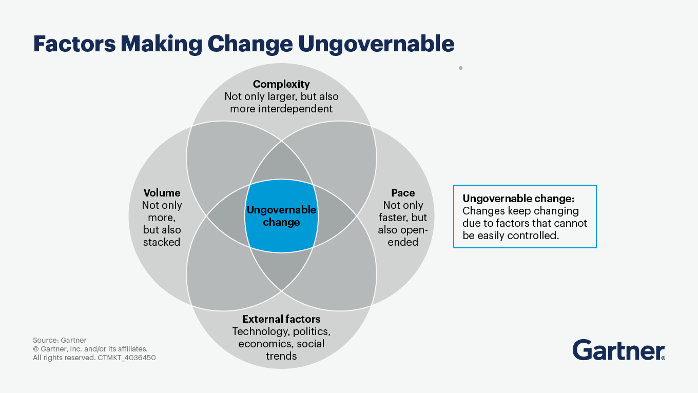 Change is constant, complex and often beyond leadership control. And most employees don’t trust organizational change, feeling skeptical about both past decisions and future initiatives. Gartner finds that only 32% of leaders globally actually get employees to adopt changes in a healthy way.