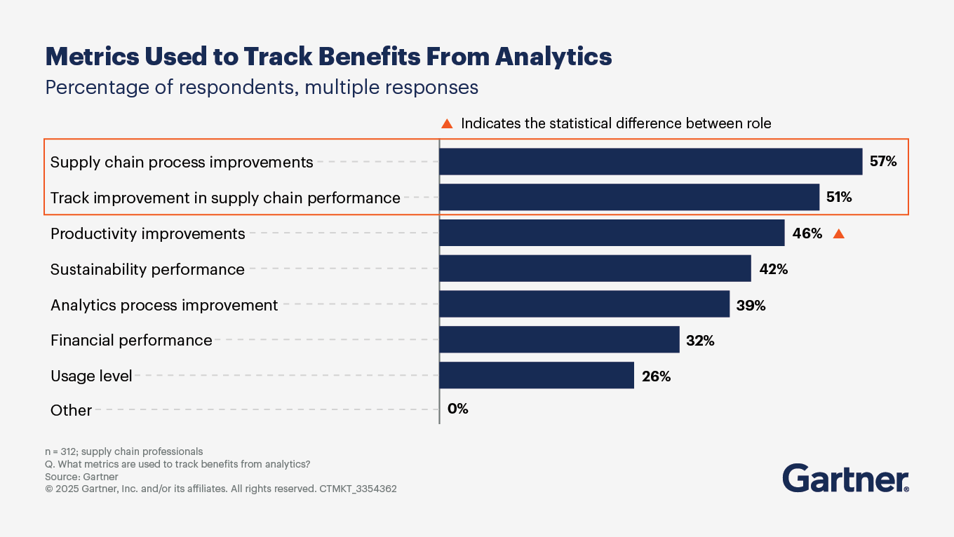 In a recent Gartner survey, 76% of supply chain executives indicated that compared to three years ago, their company is facing more frequent disruptions in its supply chain. With such a large majority of companies experiencing significant volatility, understanding and benchmarking the practices that align with analytics-driven improvement are critical to enabling supply chain analytics leaders to prepare.