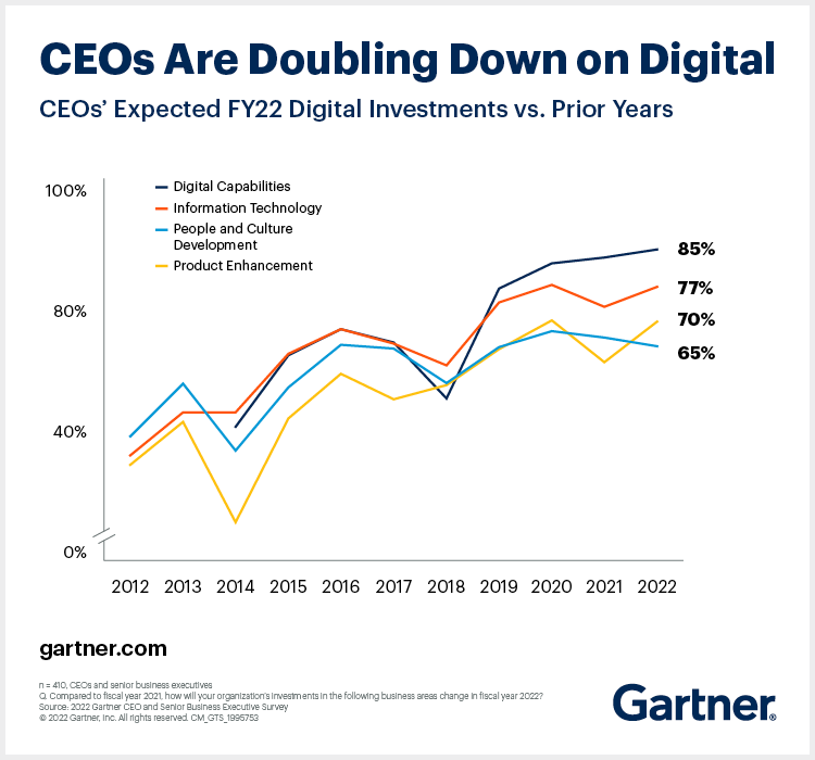 A “digital” strategy is especially key in today’s recessionary environments, and CEOs want digital dividends — in the form of top- and bottom-line financial impact — to be delivered sooner rather than later. Many organizations, however, are still deciphering what “digital” can mean for their business or mission.
