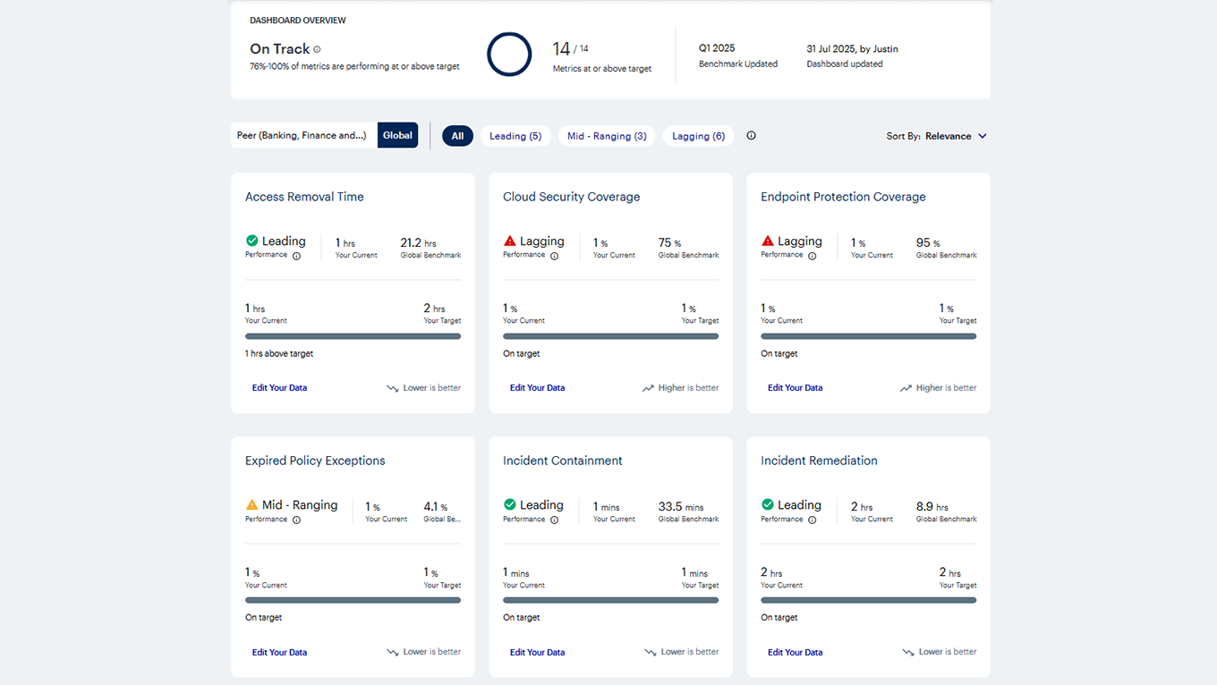 Produce benchmarkable data that you can share with the board to engage in business-driven conversations around cybersecurity.