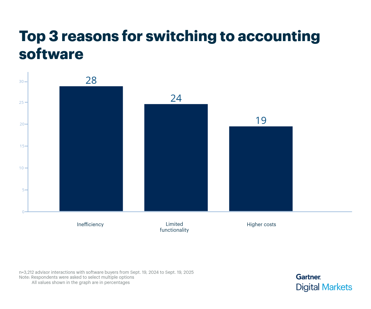 - Solve inefficiencies with automation and centralization: Notably, 28% of buyers cite inefficiency, and 24% say limited functionality is a reason for switching. Emphasize how your software automates reconciliation, tax calculations, and journal entries. Demonstrate how centralized financial data improves accuracy and simplifies audits.