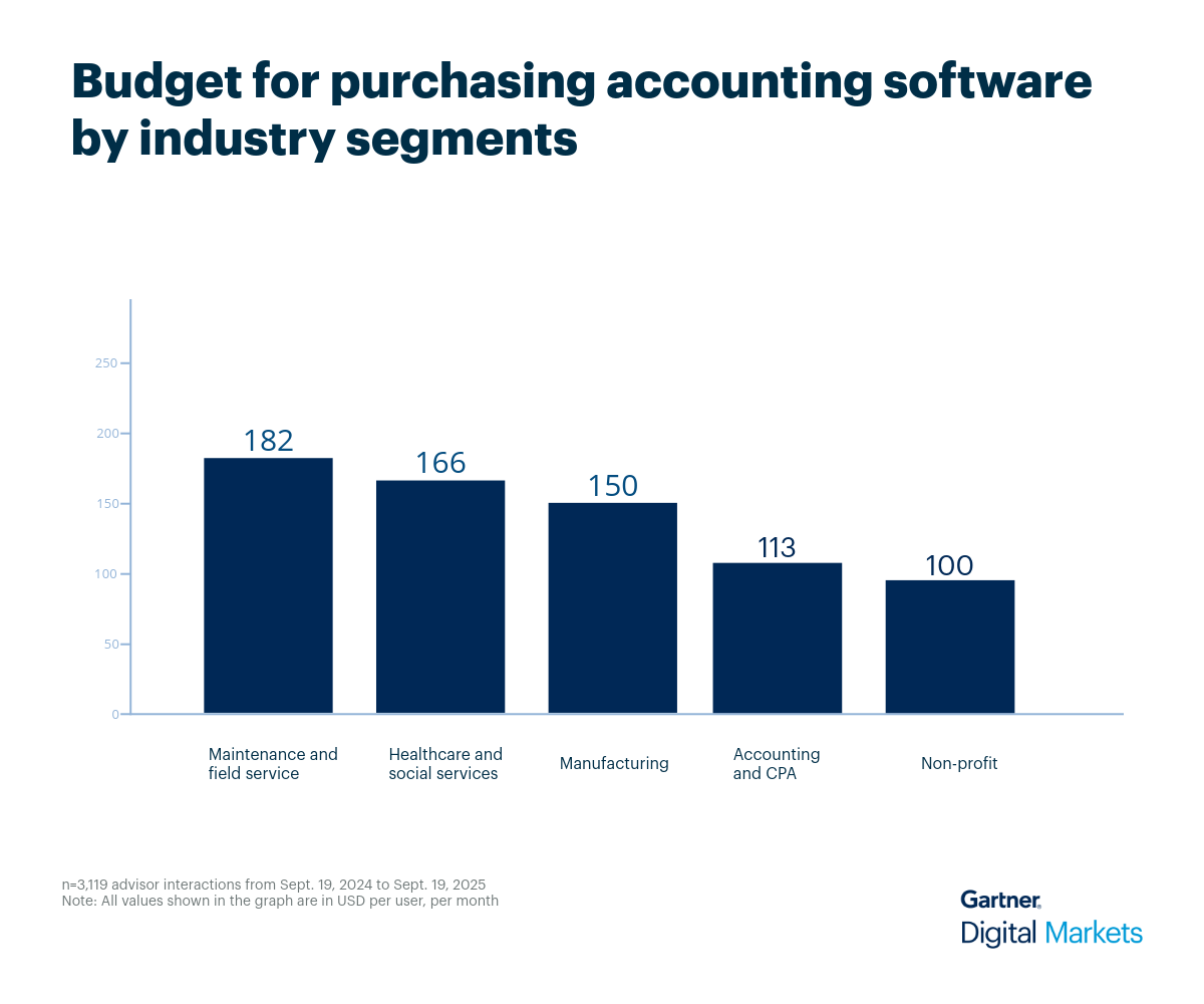 - Be transparent and pricing-aligned: Clearly display your pricing, aligning with the average budget of $100–$182 per user, per month. Help buyers shortlist your tool by benchmarking against trusted resources like the 2025 Capterra Shortlist for accounting software. Whenever possible, offer tiered plans to match different business sizes and needs and allow for room to grow and scale.