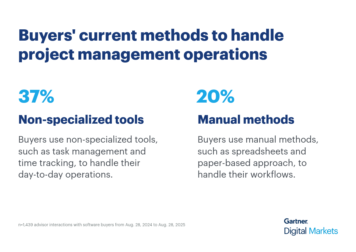 Buyers often face fragmented systems that don’t talk to each other. They’re juggling separate tools for time tracking, scheduling, and reporting, leading to inefficiencies and manual work. Project management software helps unify these functions, automate repetitive tasks, and provide clearer visibility for stakeholders.