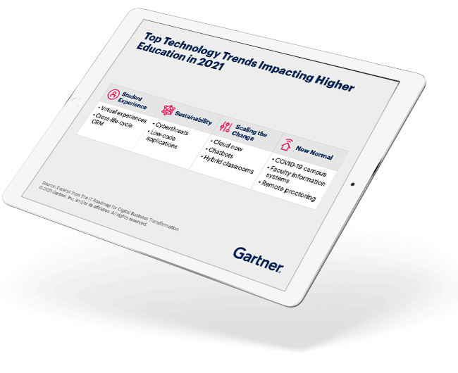 The COVID-19 pandemic accelerated the digital maturity of higher education institutions. Virtual interactions have replaced on-campus activities in response and must now be optimized for a better student experience. Education leaders need to understand the top technology trends shaping higher education globally.