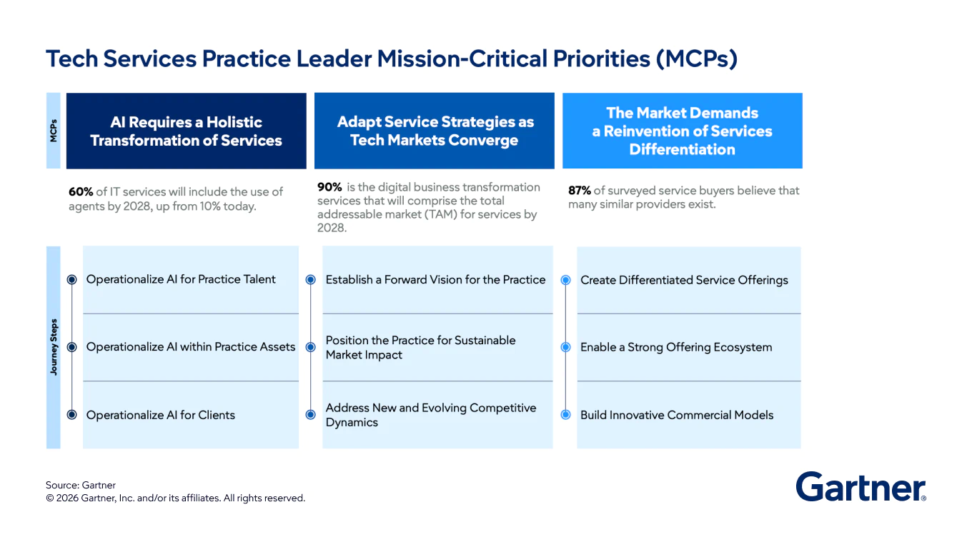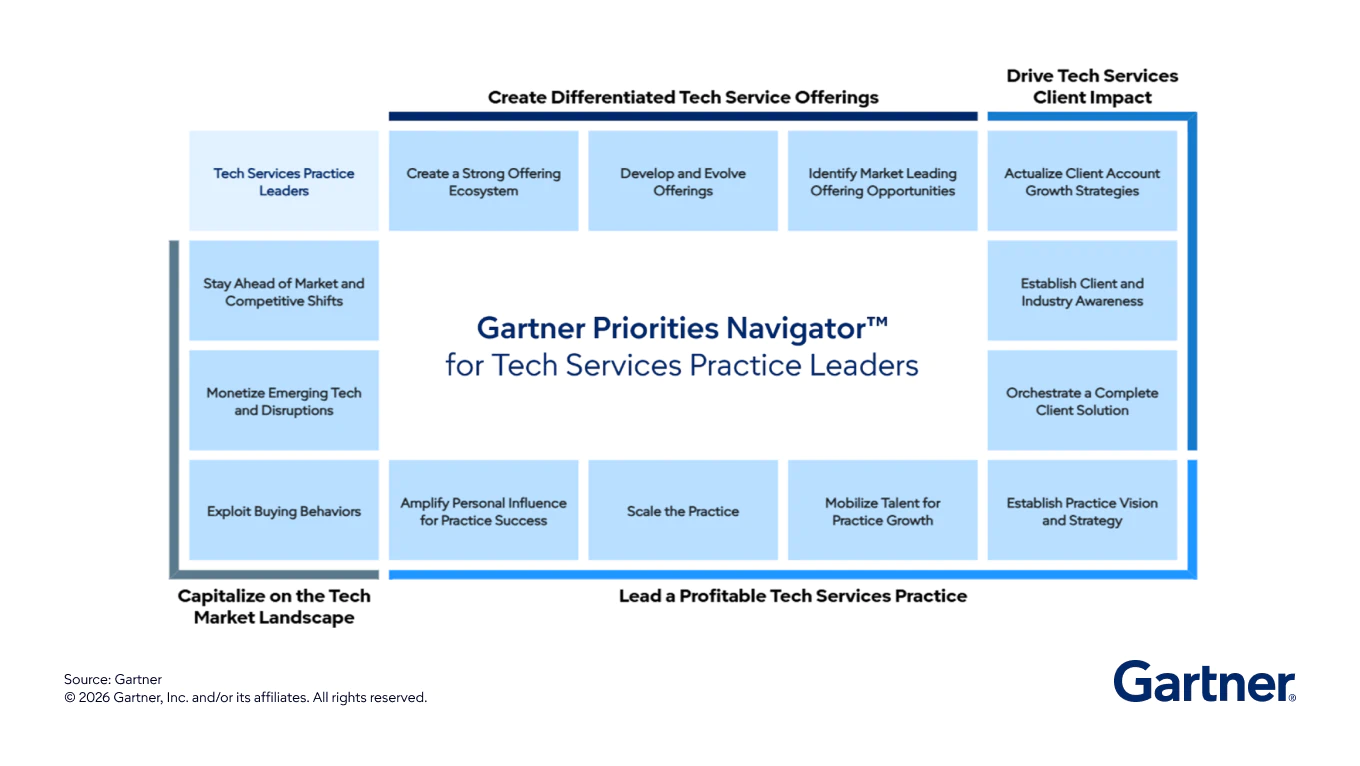 Gartner for Tech Services Practice Leaders also equips you to tackle Perennial Priorities by connecting enterprise strategy to the functional decisions that drive performance.