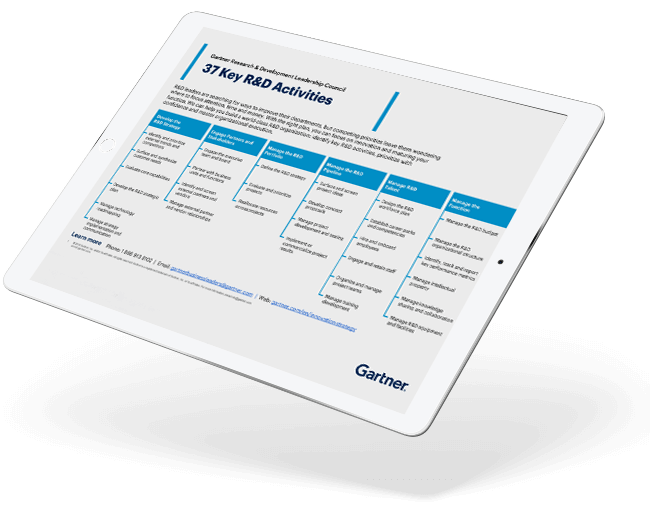 Don’t waste time on activities that won’t move the needle: Learn what successful R&D leaders say are the 37 key management activities for building a world-class organization. With the right plan, you can prioritize with confidence, and focus on innovation and maturing your R&D function.