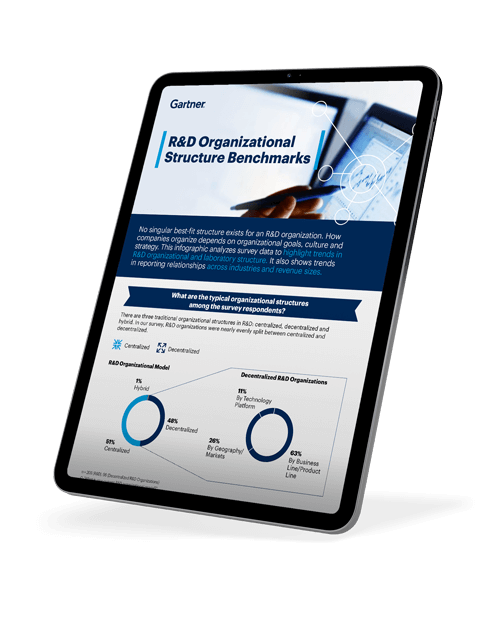 This infographic draws on recent survey data to provide R&D leaders with benchmarks to compare your position to peers of the same organizational structure or revenue band, including: