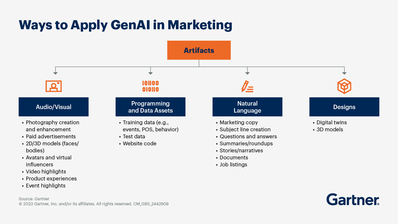 The ability to create original content, synthetic data, models of physical objects, and code to improve response time to customer engagement is providing breakthrough innovation opportunities for marketing.