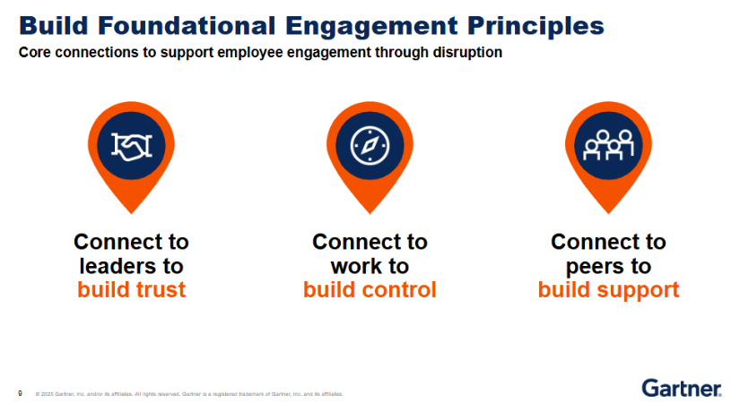 Employees are experiencing disruptive change daily, and HR leaders fear engagement will be negatively impacted. In this session, Rachael Dix, Director, Advisory at Gartner, shared tactics to proactively connect employees to leaders, to work, and to one another to lay solid foundations for engagement as change inevitably continues.