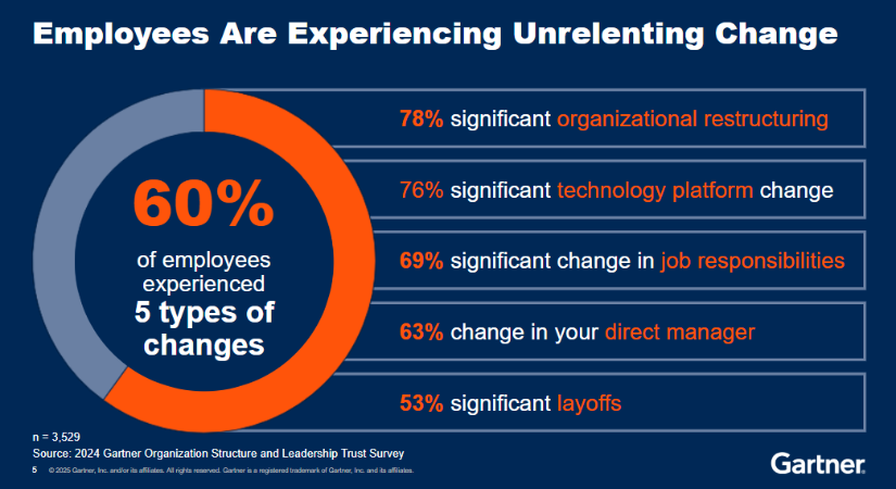 The average employee faces 13 enterprise-wide changes each year, which can significantly reduce employee engagement and workforce performance while increasing attrition. In this session, Ashley Steele, Vice President, Team Manager at Gartner, provided actionable guidance for HR leaders to avoid and/or alleviate repercussions from organization changes.