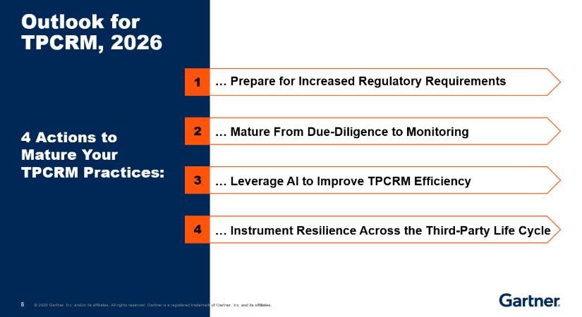 As the frequency and impact of disruptions caused by third‑party cyber incidents continue to rise, it is becoming clear that most third‑party cyber risk programs are not adequately prepared to meet current challenges. In this session, Rahul Balakrishnan, Senior Director Analyst at Gartner, outlined how chief information security officers (CISOs) can strategically optimize their third‑party cyber-risk management (TPCRM) investments in 2026 and beyond.
