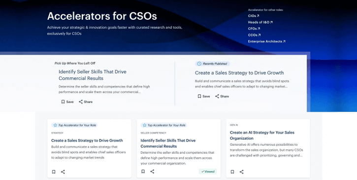 Gartner equips Tech CSOs with foresight, clarity and confidence. Our objective insights, role-focused tools and expert guidance help CSOs drive growth, optimize performance and lead through the complexities of today’s tech landscape.